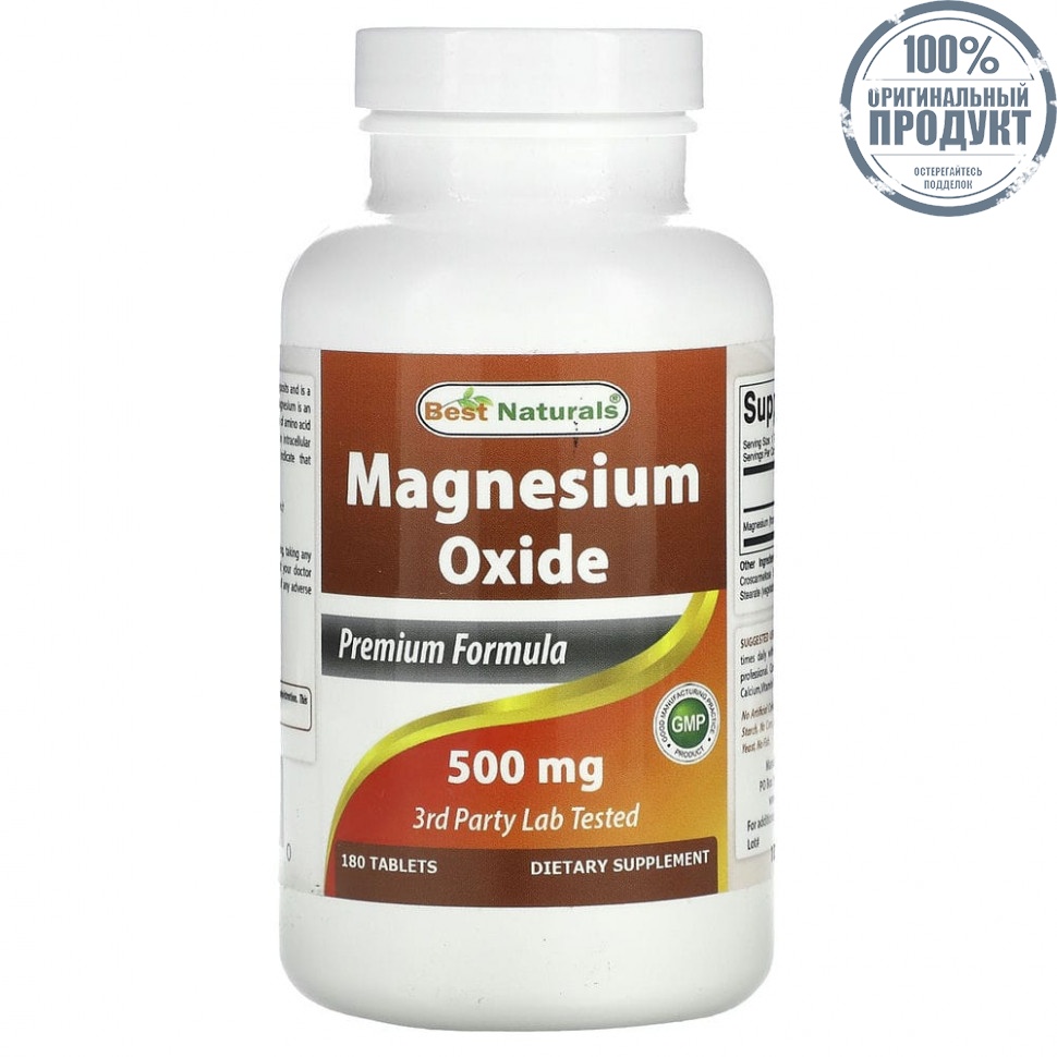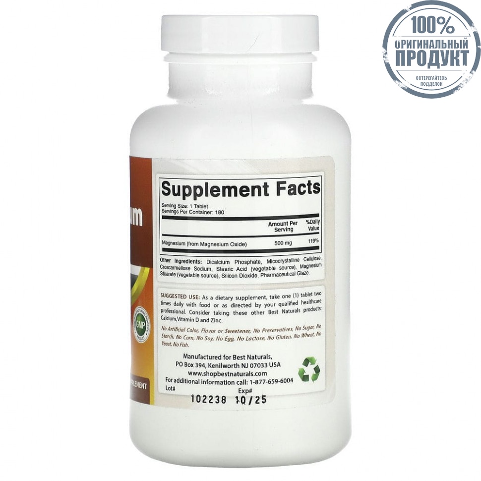 Best Naturals, Оксид магния, 500 мг, 180 таблеток