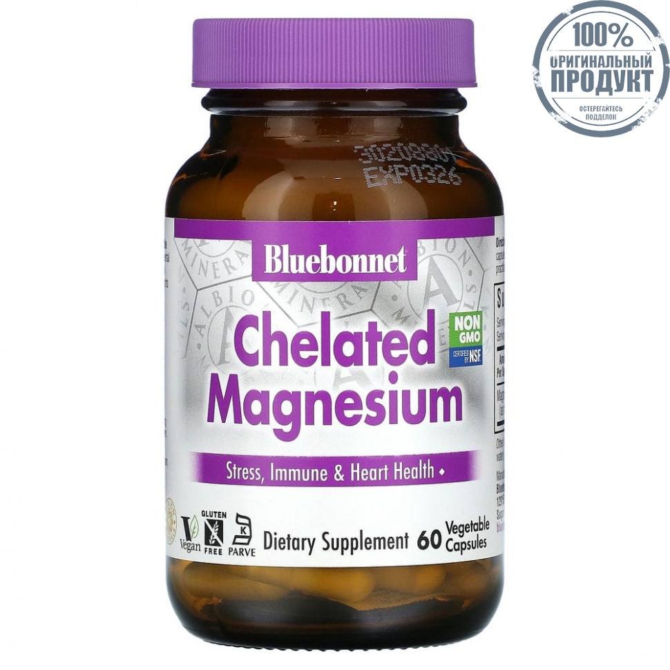 Bluebonnet Nutrition, Хелатный магний, 60 растительных капсул