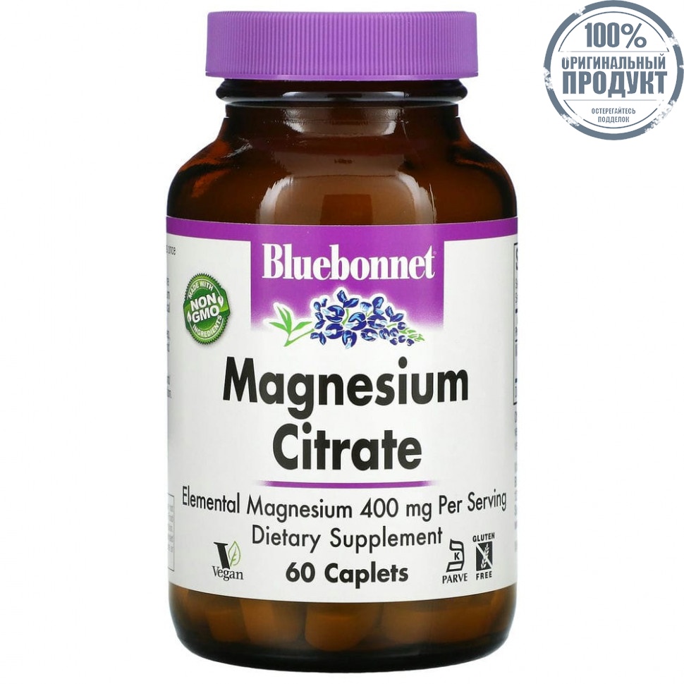 Цитрат магния Bluebonnet в капсулах по 400 мг содержит магний в виде хелата цитрата магния. Магний необходим в более чем 3000 биохимических реакциях в организме, но в первую очередь известен тем, что успокаивает душу и тело, снижает стресс, вызывает спокойный сон, повышает плотность костей, а также поддерживает иммунную и сердечно-сосудистую системы.