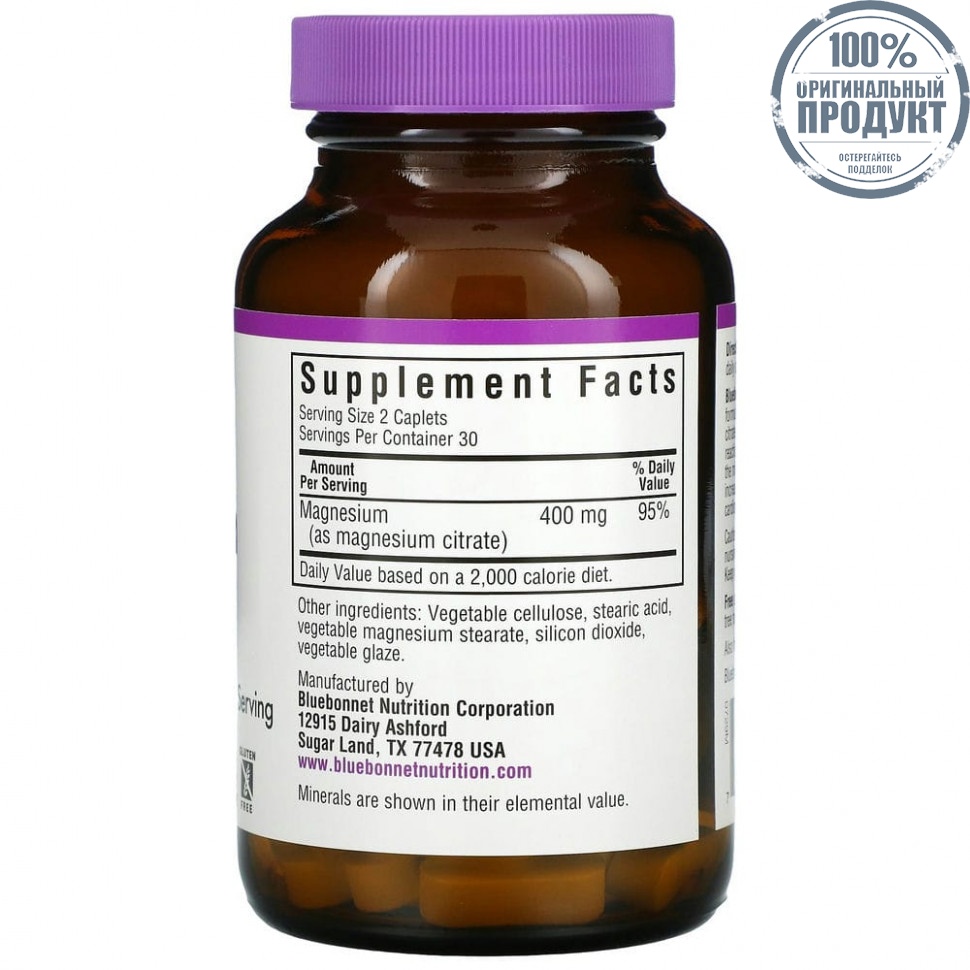 Bluebonnet Nutrition, цитрат магния, 400 мг, 60 капсул
