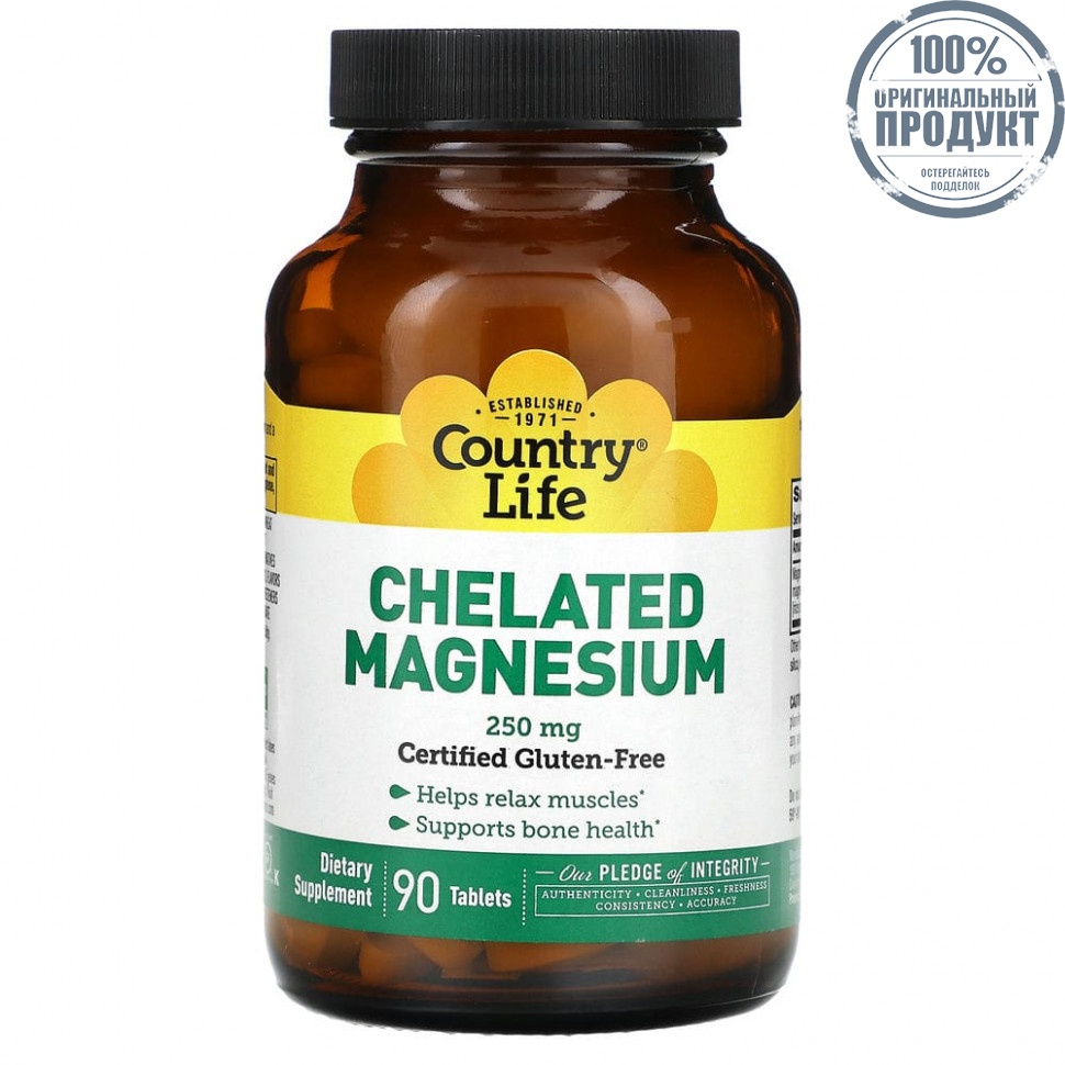 Country Life, Хелатный магний, 250 мг, 90 таблеток