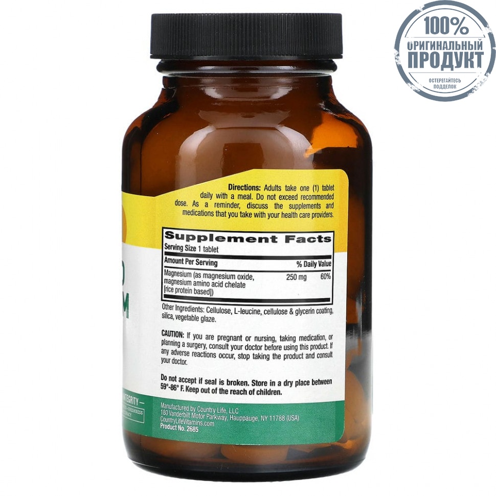 Country Life, Хелатный магний, 250 мг, 90 таблеток [11386]