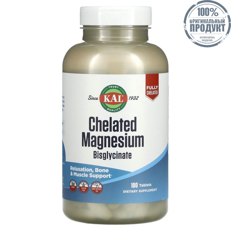 KAL, Хелатный бисглицинат магния, 180 таблеток