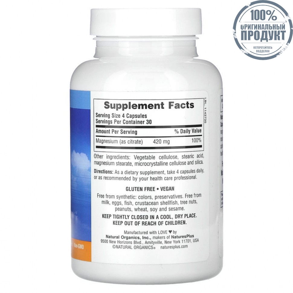 400 мг натурального, успокаивающего, жизненно необходимого магния в форме цитрата, имеющего высокую биодоступность.