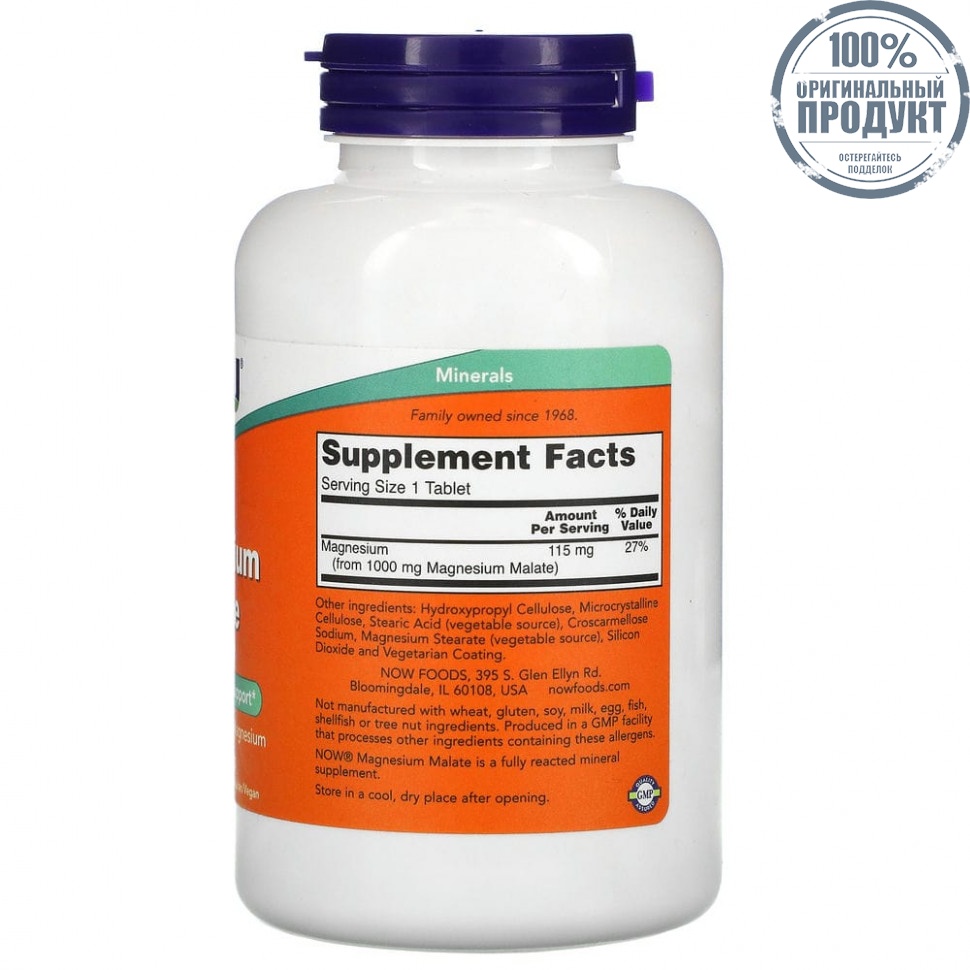 NOW Foods, малат магния 1000 мг, 180 таблеток