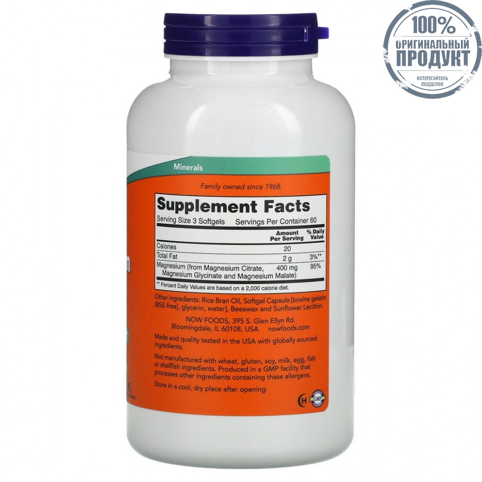 Магний — микроэлемент, имеющий важное значение для производства энергии и обмена веществ, сокращения мышц, передачи нервных импульсов и здоровья костей. Он необходим для корректного функционирования около 300 ферментов. Реакции, катализируемые такими ферментами, включают синтез жирных кислот, синтез белка и метаболизм глюкозы. Поддержание нормального уровня магния в организме важно для кальциевого обмена, так как он участвует в работе паращитовидной железы. Цитрат магния легко всасывается, а капсулы цитрата магния от NOW® в жидкой хелатной форме обеспечивают превосходную биодоступность.