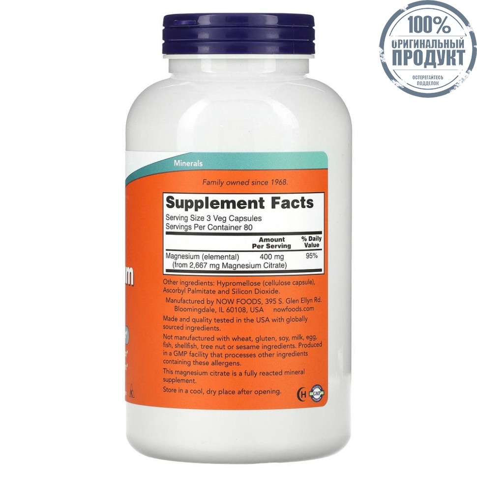 NOW Foods, цитрат магния, 240 растительных капсул [3366]