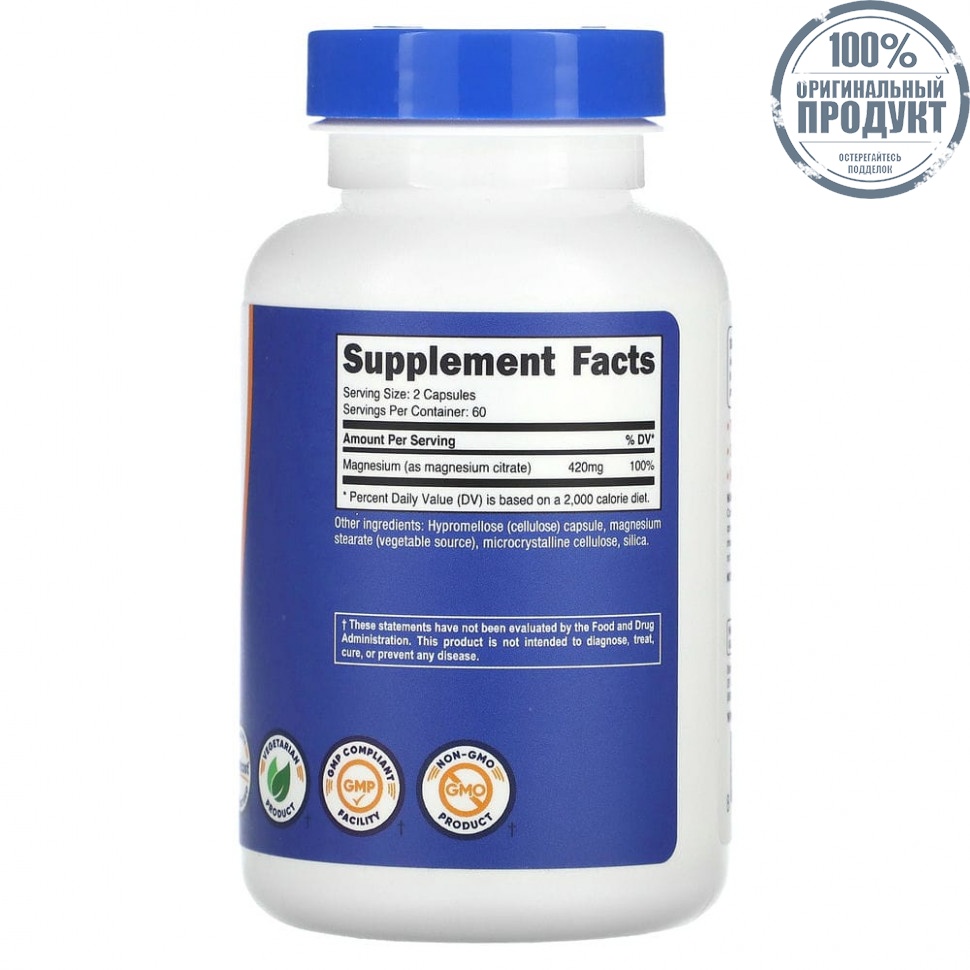 Nutricost, Цитрат магния, 210 мг, 120 капсул