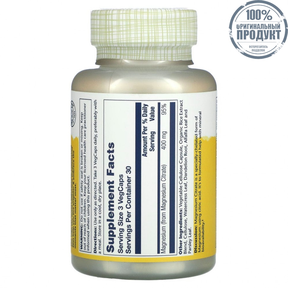 Элемент каталога Solaray, Цитрат магния, 133 мг , 90 вегетарианских капсул [7366]