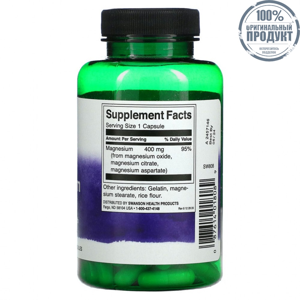 Элемент каталога Swanson, Комплекс тройного магния, 400 мг, 100 капсул [9463]