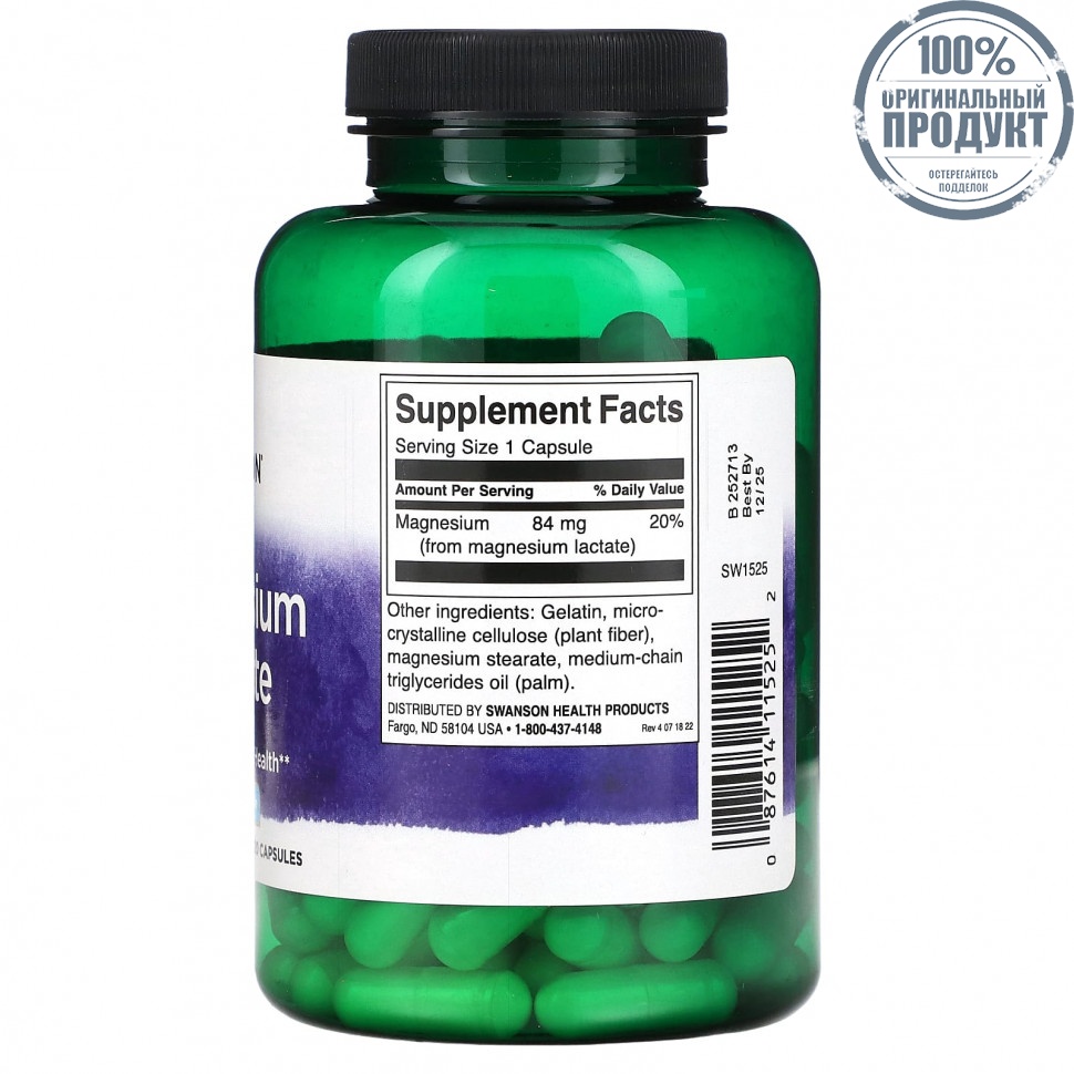 Swanson, Лактат магния, 84 мг, 120 капсул