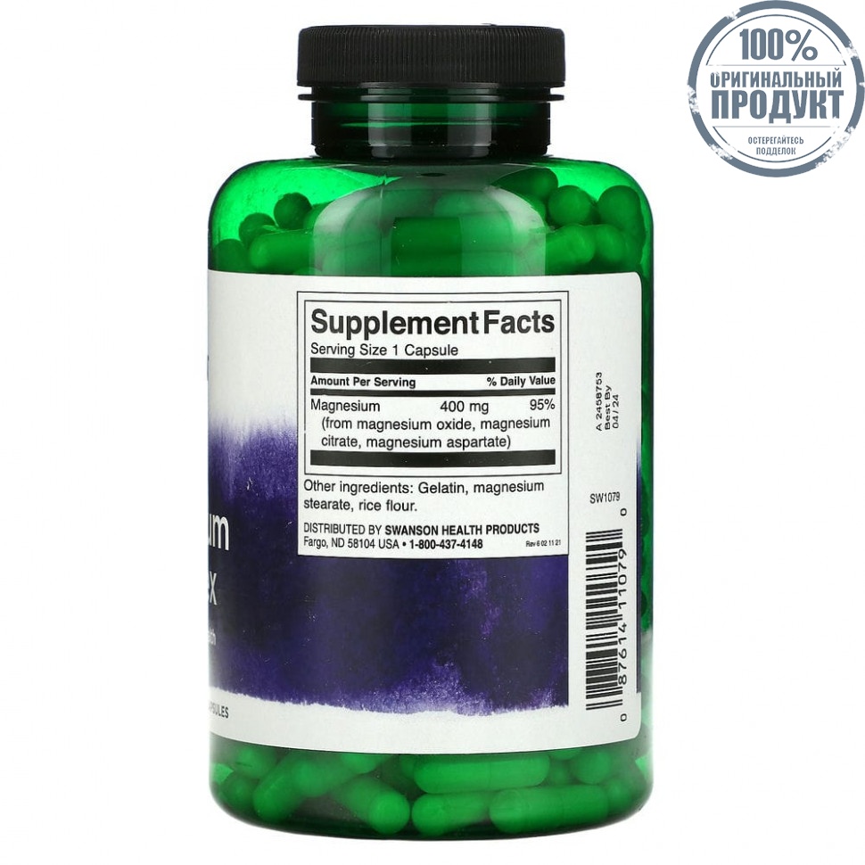 Элемент каталога Swanson, Тройной комплекс магния, 400 мг, 300 капсул [9663]